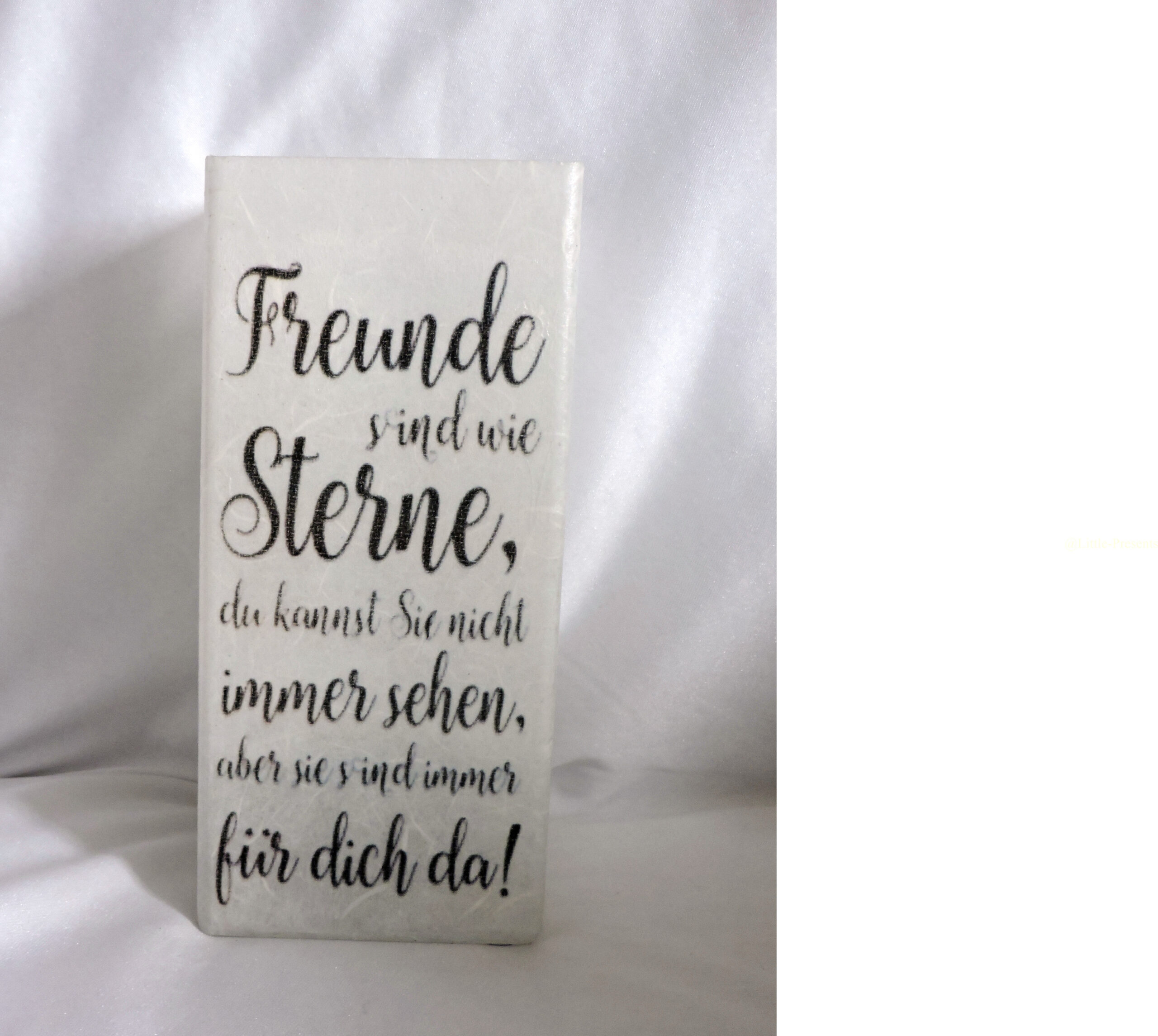 „Diese liebevoll gestaltete Glaslampe mit Spruch ‚Freunde sind wie Sterne‘ ⭐ bringt Wärme und Licht in dein Zuhause. Der Text erinnert daran, dass wahre Freundschaft immer da ist – auch wenn man sie nicht immer sieht.